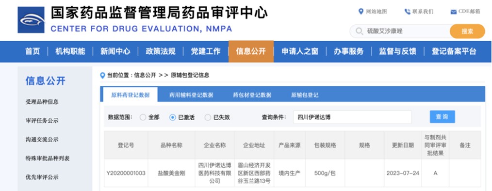 原料藥已順利批準(zhǔn)上市,登記號(hào)為:“Y20200001003”,登記狀態(tài):“A”
